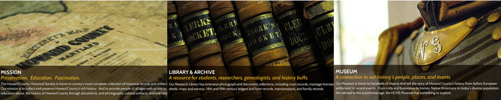The Howard County Historical Society owns over 50,000 objects, photos, archives, and library items related to the history of Howard County, Maryland.